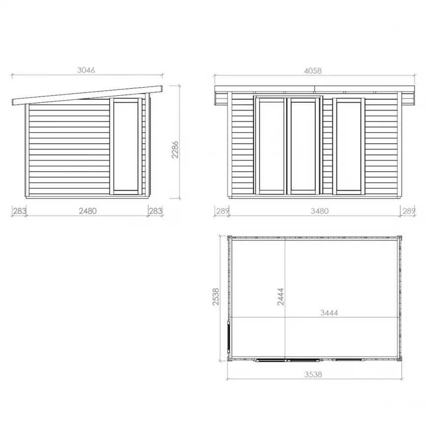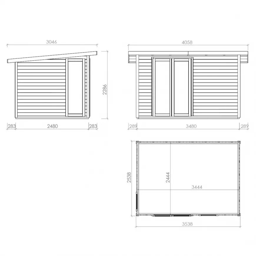 - Külső méret tető nélkül: 348 x 248 cm