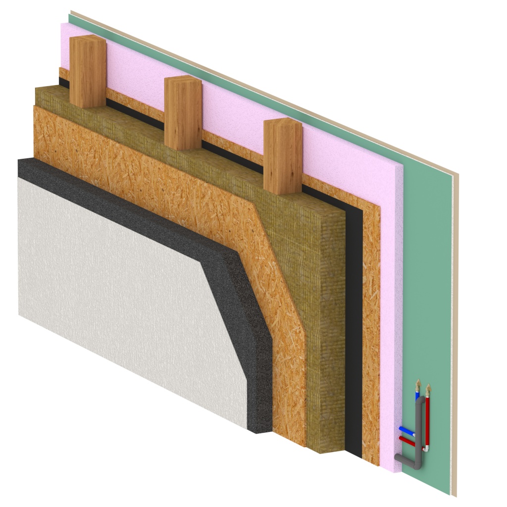 30cm Téglafal + 20cm homlokzati szigetelés – 0,14W/m2K