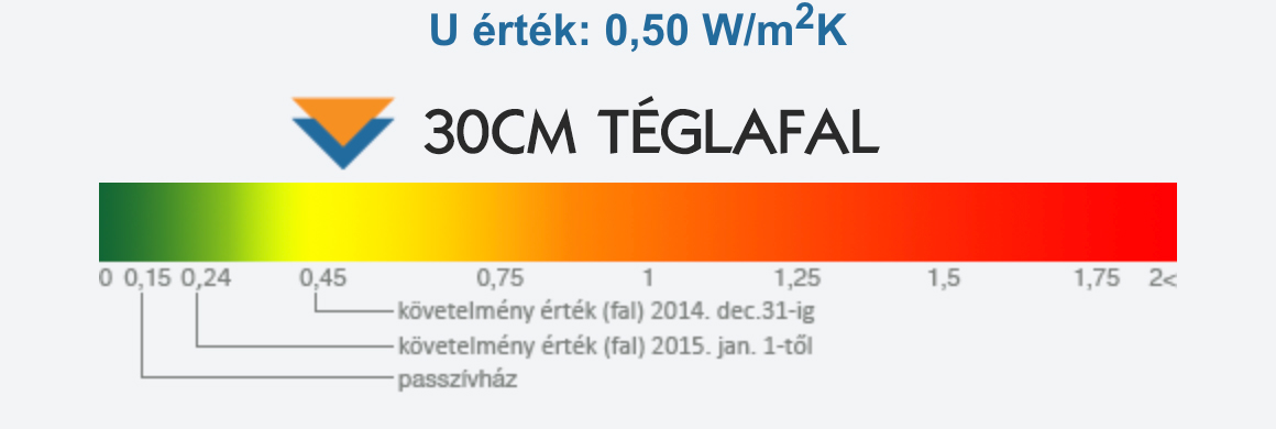 30cm Téglafal: 0,50W/m2K