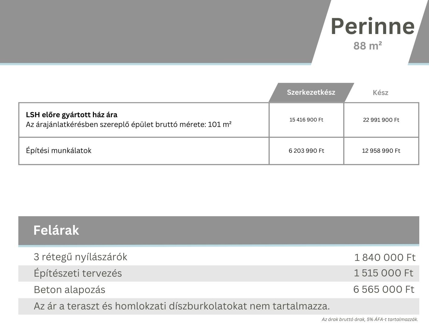 Ideális 4-6 fő számára Bruttó 101 m2 Nettó 88 m2 Ajánlott telekterület: minimum 800 m2